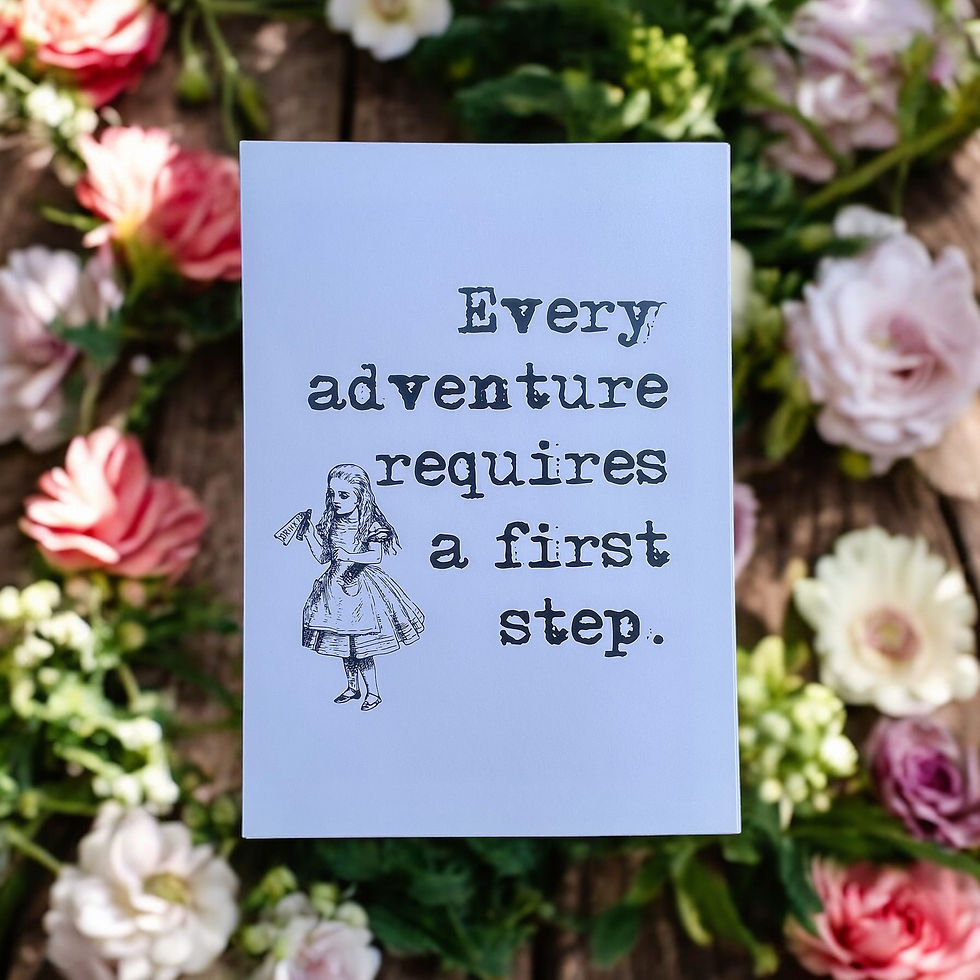 Alice in Wonderland Quote Card Every Adventure Requires a first step